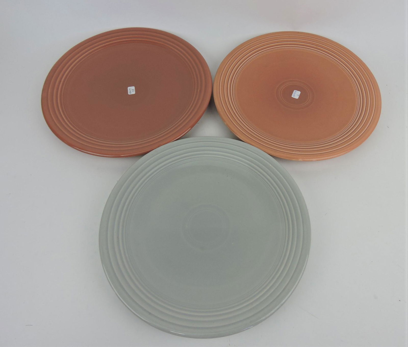 Fiesta 13" plate group, 2 rose, 1 gray