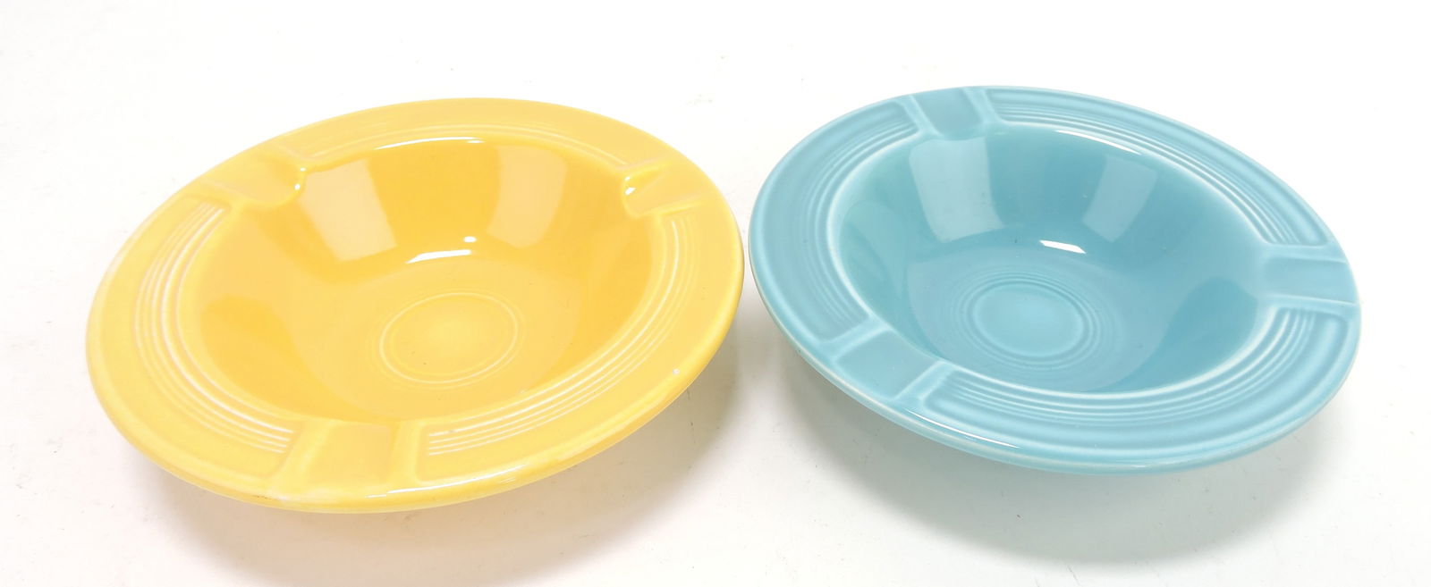 Fiesta ashtrays, yellow & turquoise