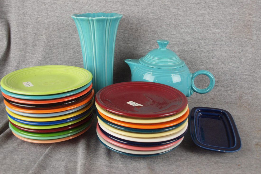 Fiesta Post 86 group - 23-7" plates, turquoise medium