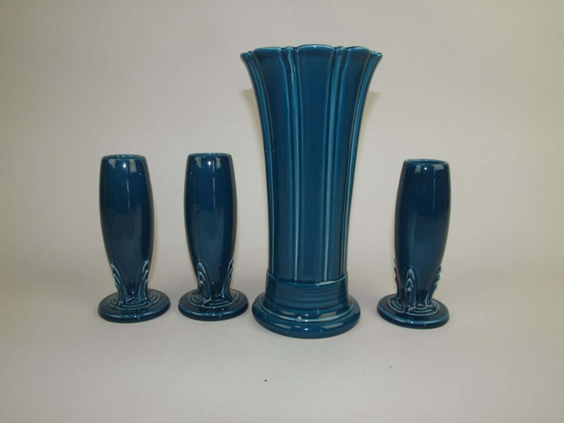 Fiesta Post 86 juniper medium vase and 3 bud vases