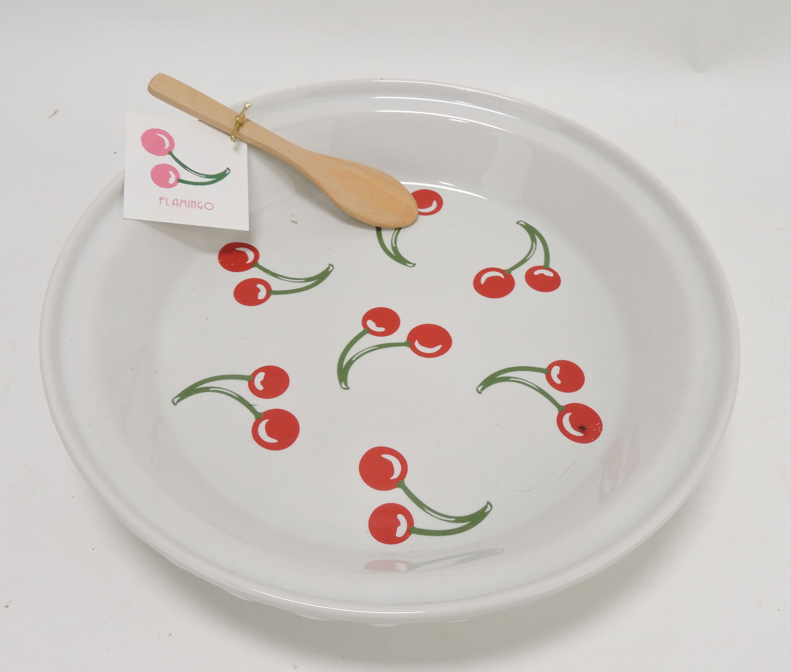 Fiesta Post 86 pie baker white with cherries,
