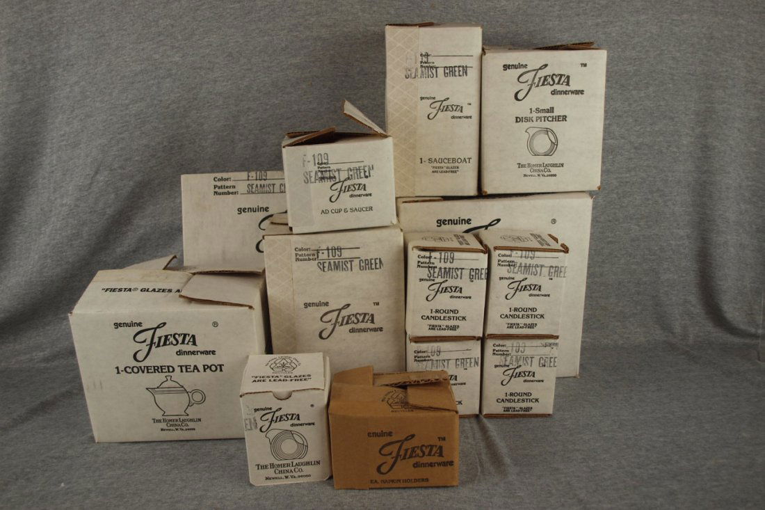 Fiesta Post 86 sea mist NIB group - teapot, serving