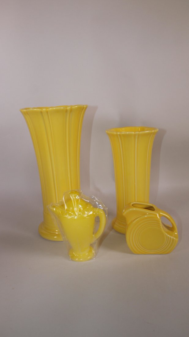 Fiesta Post 86 sunflower 8" and medium vases, mini disk