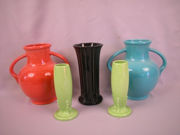 Fiesta Post 86 vase group - Persimmon and Turquoise