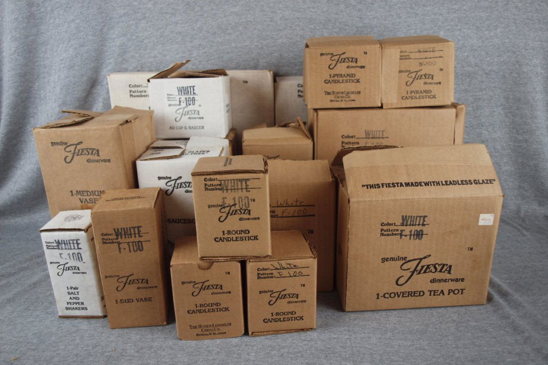 Fiesta Post 86 white NIB group - chop plate, serving