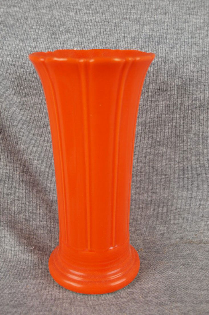 Fiesta red 8" flower vase, rim chip