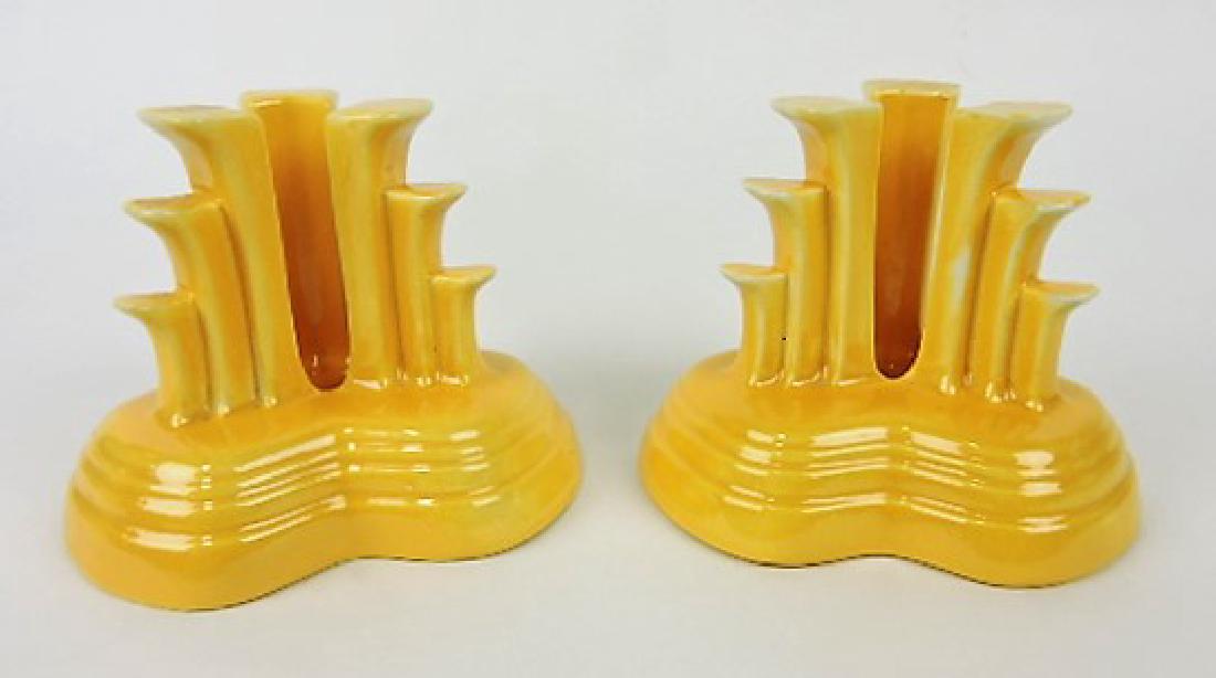 Fiesta tripod candle holders, pair, yellow