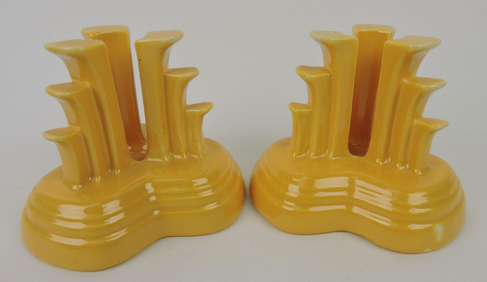 Fiesta tripod pair candle holders, yellow