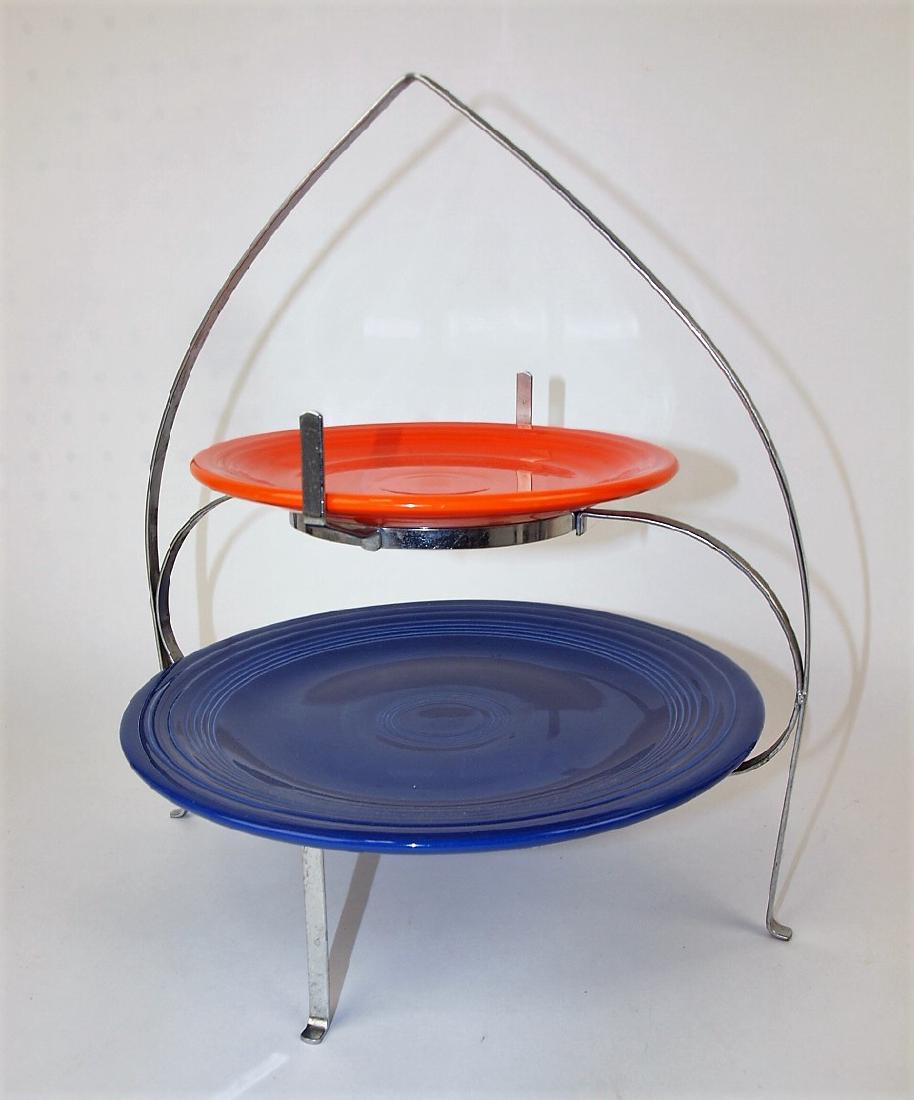Fiesta two tier chrome tidbit tray server with 7" red