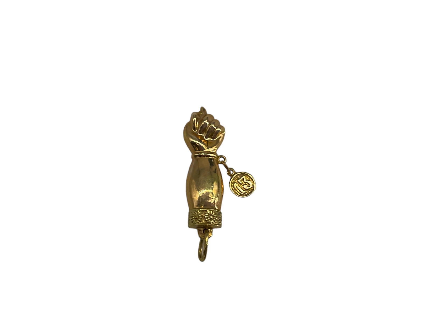 Vintage 10k Yellow Gold Large Black Mano Figa Charm Pendant