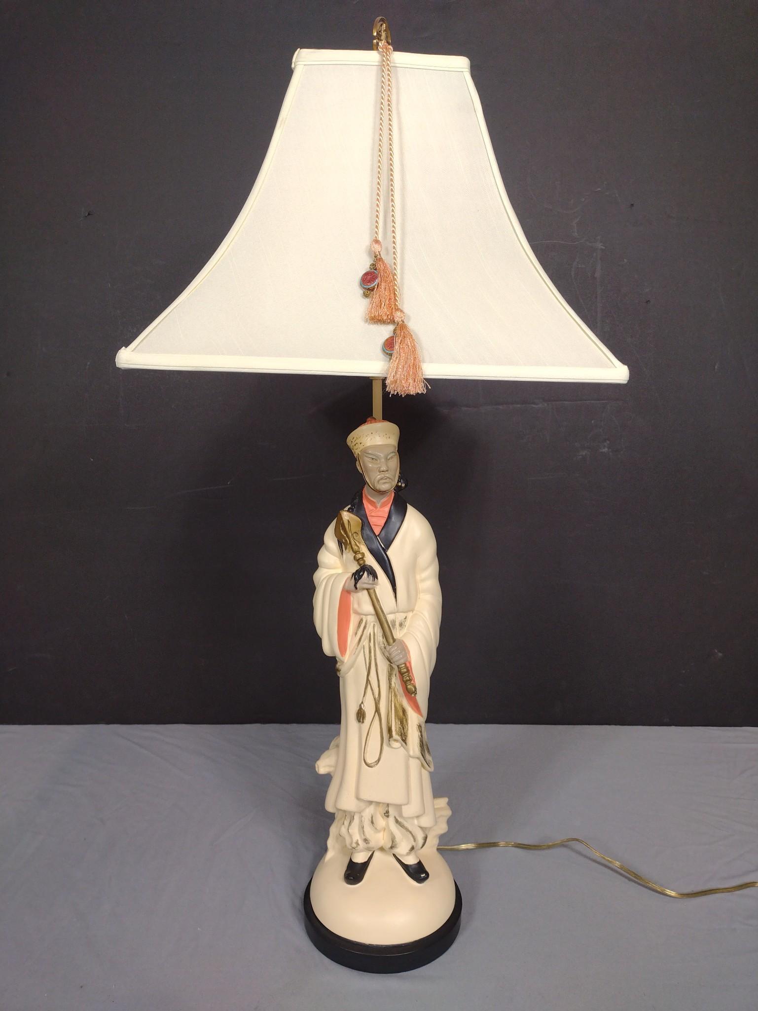 Vintage Chalkware Asian Figural Table Lamp - 1940's