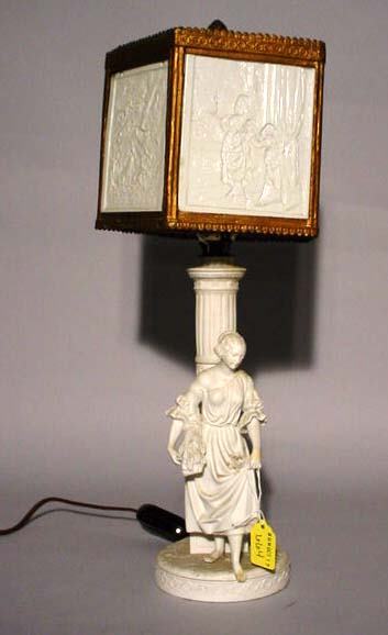 FIGURAL BISQUE PORCELAIN TABLE LAMP WITH FIVE-SIDE