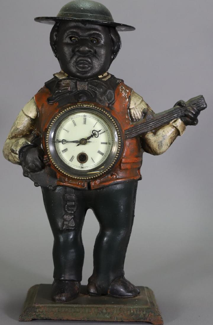 A Lot of 2 Clock MenMar 03, 2026Antique cast iron cowboy with his guitar bottle opener.Mar 05, 2026Antique European Figural Mantel Clock, Spelter, c. 1900Mar 05, 2026Black Americana Cast Iron Mechanical Bank Top Hat Man Marble GameMar 01, 2026Black Americana Cast Iron Mechanical Bank Top Hat Man Marble GameMar 01, 2026A rare and antique cold painted brass figural "John Bull" alarm clock manufactured by Friederich2 days LeftBlack Americana Uncle Mose Cast Iron Bank Statutette Figurine.Mar 01, 2026Victorian Waterbury Cast Iron Mantel Clock.6 days LeftRustic Lodge Style Hand-Cast Cowboy Sheriff Clock6 days LeftTable clock with female figure. French school. 19th century.3 days LeftAntique Cast Metal Lady Figure Clock Topper5 days LeftMONKEY ON LOG BELL TOY6 days LeftAntique Victorian Era Cast Iron Hand Painted Mantle Clock w/ Inlaid Mother of PearlMar 02, 2026Patinated Metal and Marble Mantel Clock4 days LeftVintage Ceramic Bar Tender Decanter FigurineJul 24, 2025Black Americana Cast Iron JE STEVENS Mechanical Bank Monkey BusinessMar 01, 2026