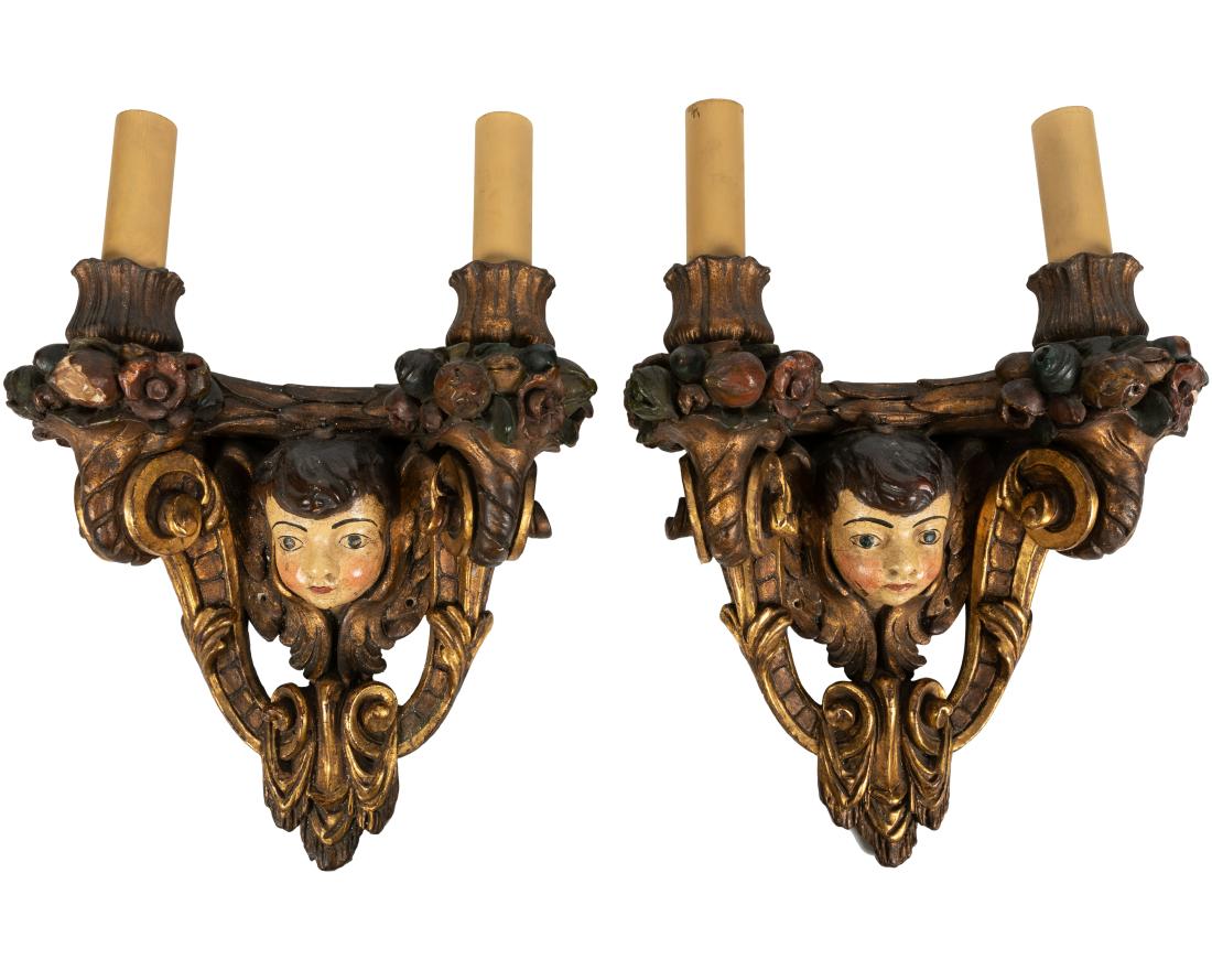 Figural Gesso Over Wood Sconces