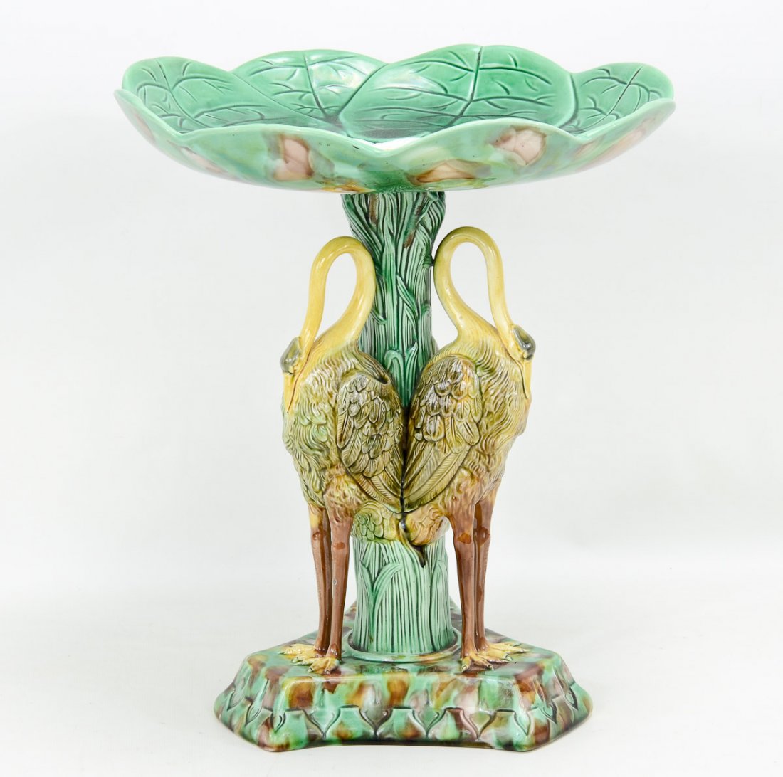 Early Art Deco California Pottery Ceramic Tropical Flamingo Flower VaseAntique Majolica Crane & Lily Pond Pedestal CenterpieceMar 15, 2026Antique Majolica Porcelain Figural Compote Bowl Featuring Cherubs & Geese6 days LeftWedgwood Majolica Footed Taza Reticulated C. 187514 hrs LeftThomas Sergent Figural Majolica CandlestickMar 03, 2026Royal Dux Bohemia Three Graces Porcelain Compote Centerpiece Pedestal Art Nouveau Bowl R15315 hrs LeftMONUMENTAL BARBOTINE MAJOLICA VASEMar 07, 2026Theodore Deck French Majolica Japonisme Vase 14in Hand-Painted 19th Century1 day LeftChinese Wang Bing Rong Cranes Lotus Ginger Jar14 hrs LeftItalian Majolica centerpiece.2 days LeftRoyal Haeger Pottery "Swan" Ceramic VaseMar 17, 2026Early Art Deco California Pottery Ceramic Tropical Flamingo Flower VaseMar 20, 2026Amphora Austria Edda Pottery Art Nouveau 16.5" Vase - Grapes MotifMar 07, 2026French Majolica Ceramic Duck Shaped Pitcher by Onnaing Circa 189011 hrs LeftEarly Limoges glaze Rookwood vase, butterflies, Wenderoth, 18823 days LeftAn imposing German porcelain flower encrusted figural centerpiece, possibly Meissen, 19th century4 days Left