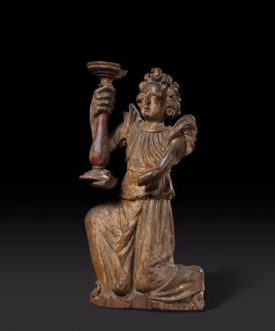Figure d’ange porte torchère en bois polychrome.