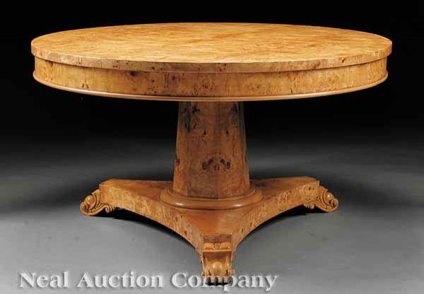 American Stenciled Mahogany and Marble-Top TableMar 29, 2026William IV Carved and Figured Mahogany Center Table4 days LeftSpiro Parquetry Inlaid Center Table Model 8101-35 Mixed Wood 41" x 41" x 30"741 Lots AwayREGENCY STYLE MAHOGANY BRONZE MOUNTED LOW TABLE HAVING AN EGLOMISE GLASS TOP AND A GILT CARVED3 days LeftGeorge II Mahogany Gateleg Demilune-Games Table4 days LeftREGINA ANDREW (ATTRIB.) HERRINGBONE PARQUET-TOP PEDESTAL TABLE, 53.5"DIAM6 days LeftA GOTHIC REVIVAL OAK OCTAGONAL DINING TABLEIn the style of A.W. Pugin (1812-1852), 20th centuryattributed R.J. Horner, Renaissance Revival Walnut and Marble Top Center Table5 days LeftFRENCH EMPIRE STYLE MARBLE-TOP MAHOGANY CENTER TABLE/ GUERIDONMar 29, 2026Charles X Style Burlwood Marquetry Gueridon Table France 19202 days LeftFRENCH LOUIS PHILIPPE MARBLE-TOP MAHOGANY GUERIDON / CENTER TABLEMar 29, 2026Nice Maitland Smith leather wrapped 40" center tableMar 29, 202618TH/19TH C. QUEEN ANNE TILT-TOP TABLEApr 17, 2026Louis XVI Style Round Table with 2 Insertable LeavesMar 30, 2026Maitland Smith, Regency Style Mahogany and Leather Rent Table5 days LeftRegency Walnut and Mahogany Drum Form Side Table4 days Left