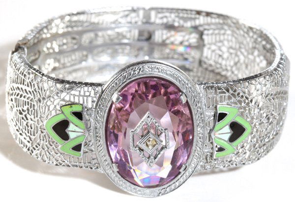 Art Deco Era Filigree Bracelet in White Gold with Platinum and Old Mine DiamondsBidhaus4.2(838)$1003 days Left