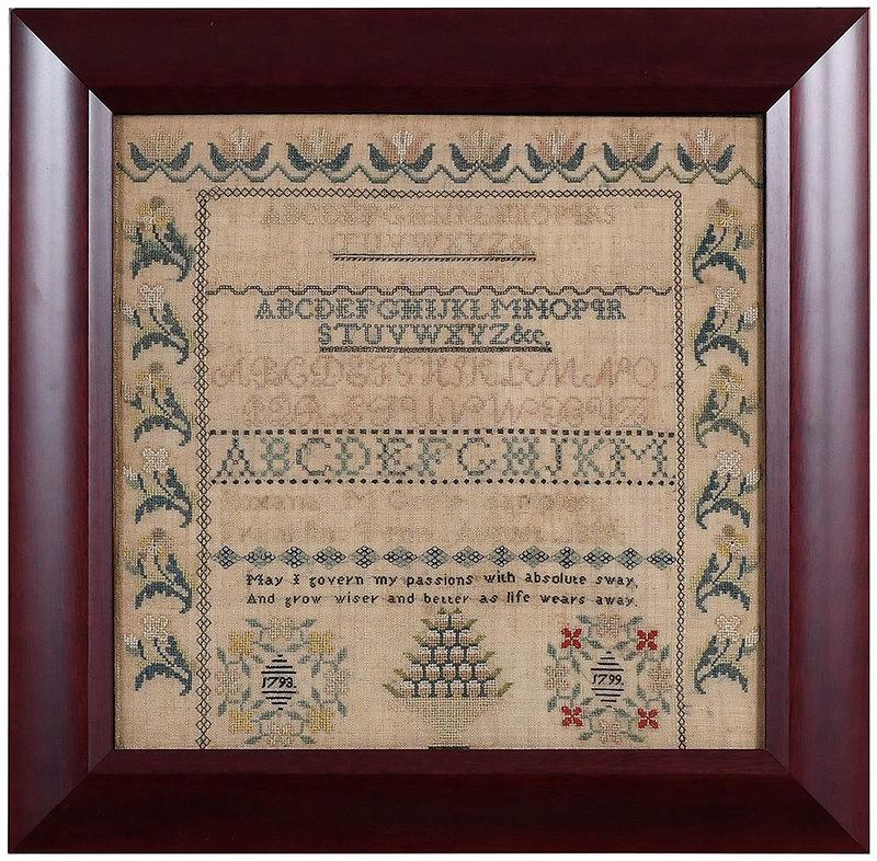 BETHIAH H. FOSTER (AMERICAN, B. 1830) NEEDLEPOINT SAMPLER. Frame, 15.5"h. 19.75"w.2 days LeftSUSAN WHITNEY (AMERICAN) NEEDLEWORK SAMPLER. Frame, 18.25"h. 14"w.2 days LeftSOPHIA PULSIPHER (MASSACHUSETTS, B. 1798) WHITE DOVE SCHOOL NEEDLEWORK SAMPLER, DATED 1811. Frame,2 days LeftZOE DAVIDSON (NEW HAMPSHIRE, B. 1804) NEEDLEWORK SAMPLER, DATED 1817. Frame, 22.5"h. 18.5"w.2 days LeftHANNAH SHED (AMERICAN, B. 1824) NEEDLEWORK SAMPLER, DATED 1833. Frame, 19"h. 18"w.2 days LeftSARAH HOMER (AMERICAN) FAMILY REGISTER NEEDLEWORK SAMPLER, DATED 1809.2 days LeftFINE AND RARE SUSAN TILTON (DANVILLE, VERMONT, B. 1813) NEEDLEWORK SAMPLER, DATED 1827. Frame, 17"h.2 days LeftMERIBAH ELLIS (AMERICAN) FAMILY RECORD PETIT POINT SAMPLER.2 days LeftANN DELUCY BURR (HARTFORD, CONNECTICUT, B. 1816) NEEDLEWORK SAMPLER, DATED 1824. Frame, 17"h. 12"w.2 days LeftSALLY OSGOOD (ANDOVER, MASSACHUSETTS) NEEDLEWORK SAMPLER, DATED 1808. Frame, 20.5"h. 19.5"w.2 days LeftELIZA ANDERSON (AMERICAN, B. 1824) NEEDLEWORK SAMPLER, DATED 1836. Frame, 19"h. 16"w.2 days Left1804 SAMPLER BY SARAH STOCK5 days LeftJANE S. WATSON NEEDLEWORK BIRD AND FLORAL SAMPLER. Frame, 22.25"h. 27.75"w.2 days LeftHelen Troup 1828 Alphabet Needlepoint SamplerMar 27, 2026AMERICAN NEEDLEWORK SAMPLER. Frame, 21."h. 23.75"w.2 days LeftEarly 19th C. Framed Needlepoint SamplerMar 28, 2026
