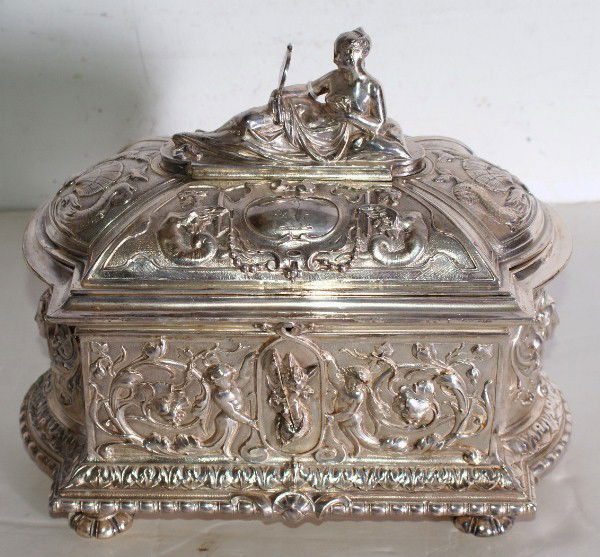 Excellent English George III Old Sheffield Silver Plate Serving Pieces434 Lots AwayEarly 19thC Dutch/German Silver Tea Caddy7 days LeftA WMF German Art Nouveau jewelry casket, circa 1905Mar 15, 2026A George III silver tea caddy By Samuel Wood, London, 1771Victorian Silver Plate Tobacco Jar, ca. 1850Mar 12, 2026A FINE EARLY 20TH CENTURY STERLING SILVER JEWELLERY BOX, C.1901, WILLIAM COMYNSMar 19, 2026George III Sterling Silver Tea Caddy,Mar 13, 202619th Century French Silvered Metal Octagonal Spice Casket with Repousse MotifsMar 08, 2026Hanau Silver Tea CaddyMar 13, 2026A large antique French Renaissance-style silver-plate casket, 19th c.Mar 15, 2026VICTORIAN MANNER COVERED SILVER TEA CADDY W HANDLESFeb 28, 2026An antique French silver Empire style sugar pot and cover by Rudolphe Beunke, c. 1890Mar 15, 2026Victorian James Shaw & Fisher Pewter Tea CaddyMar 10, 2026Antique Chinese Silver Repousse Lidded BoxMar 17, 2026George III Sterling Silver Tea Caddy,Mar 13, 2026Peruvian Sterling Silver CasketMar 19, 2026