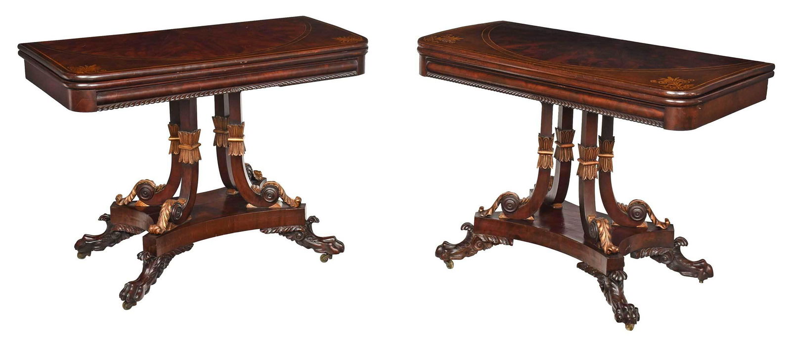 Regency Style Double Pedestal Mahogany Dining Table1 day LeftGeorge III Mahogany Pembroke TableA pair of George IV mahogany card tables, c.1825,Mar 17, 2026American Classical Brass Inlaid Mahogany Fold Over Games TableMar 16, 2026A PAIR OF WILLIAM IV AMBOYNA, EBONY, FLORAL MARQUETRY AND PARCEL GILT CIRCULAR OCCASIONAL TABLES6 days LeftPair American Empire mahogany corner console tables2 days LeftLATE FEDERAL DROP LEAF TABLE WITH A MAHOGANY GAME TABLEMar 06, 2026American Federal Figured Mahogany Games Table3 days LeftFine American Federal Carved & Figured Mahogany Drop Leaf Table3 days LeftANTIQUE CHIPPENDALE MAHOGANY WRITING TABLE.4 hrs LeftAmerican Federal Carved Mahogany Breakfast Table3 days LeftA Regency rosewood, parcel-gilt and brass sofa table, c.1820,Mar 18, 2026Federal Inlaid Mahogany Card Table4 hrs LeftSheraton Mahogany Card Table C1830Mar 07, 2026Handsome American Classical Mahogany Marble Top Center Table3 days LeftAntique American Empire Flame Mahogany Card Table c18402 days Left