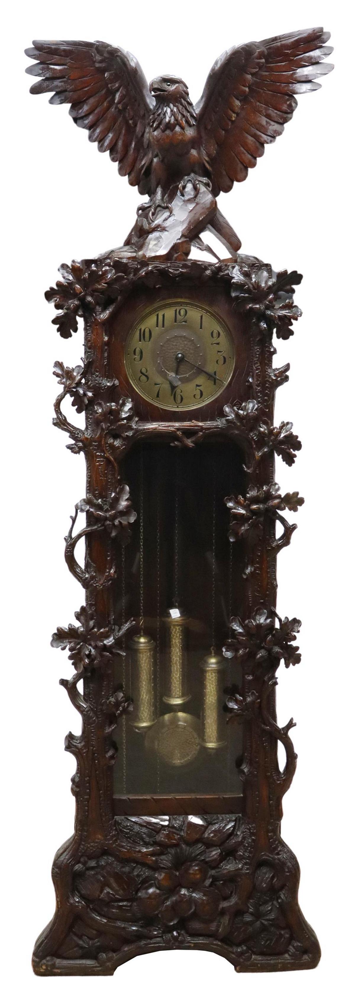 FINE EAGLE-TOPPED BLACK FOREST TALL CASE CLOCK