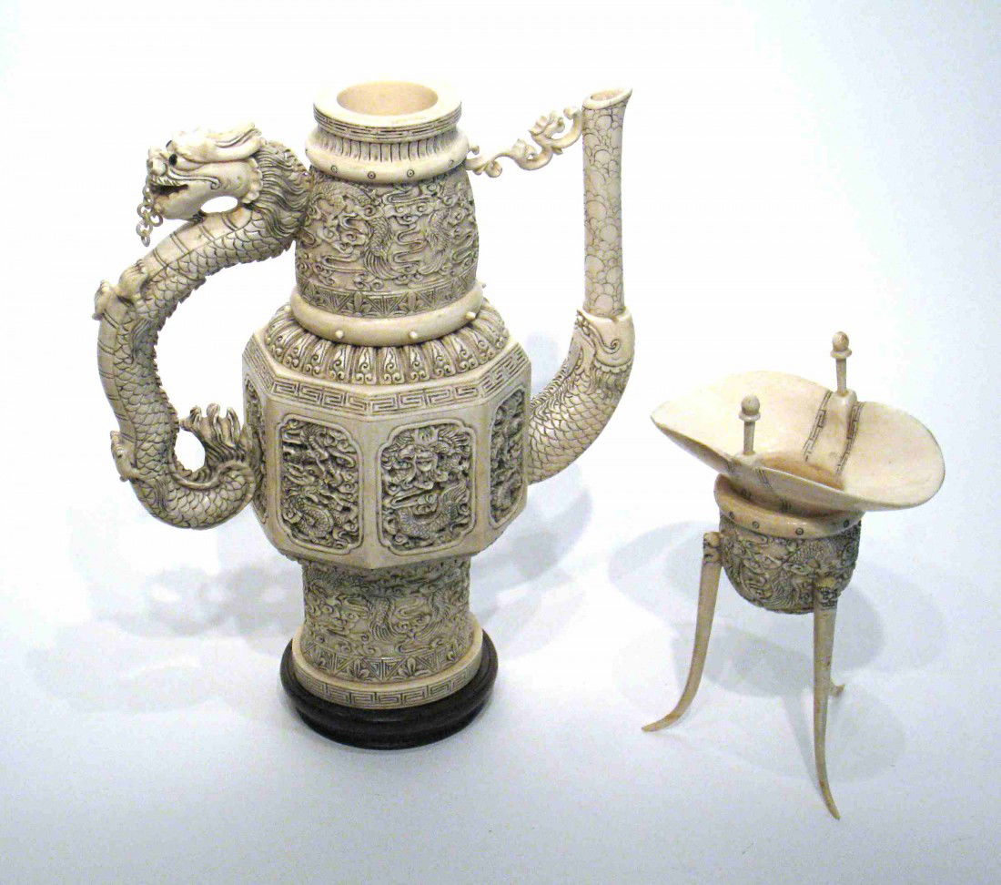 Fine Ivory Ewer And Cup