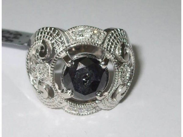 Fine Ladies Black Diamond Evening Ring