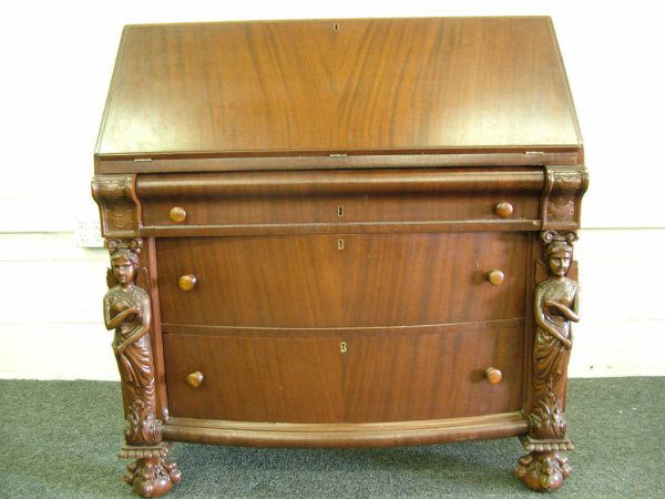 Fine Mahogany Figural Drop Front Desk