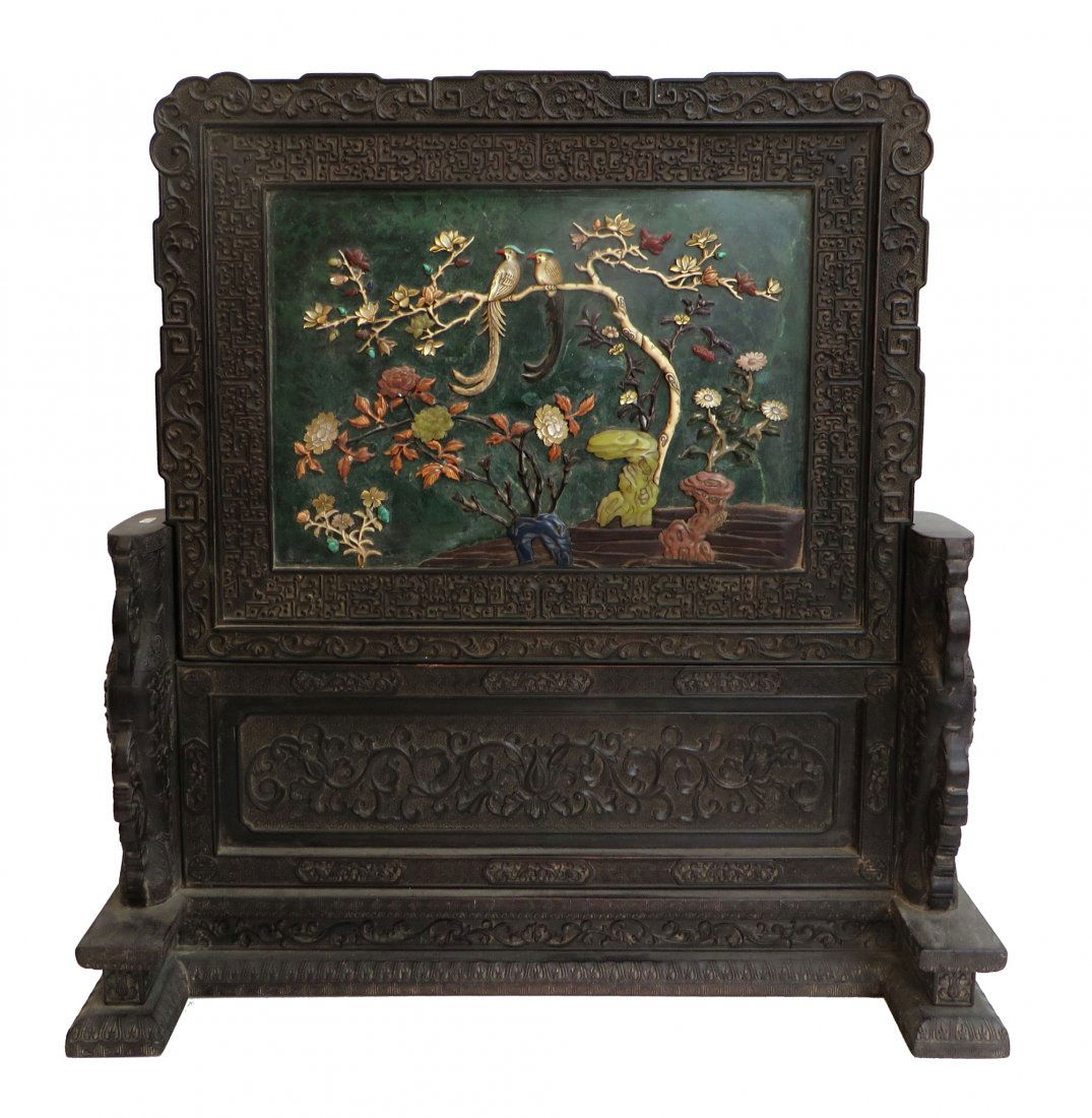 Fine Massive Qing Zitan & Hardstone Table Screen
