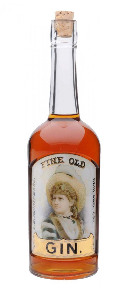 Fine Old Gin Label Under Glass Bottle.