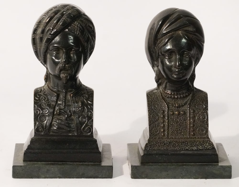 Fine Pair Orientalist Bronze & Marble Bookends