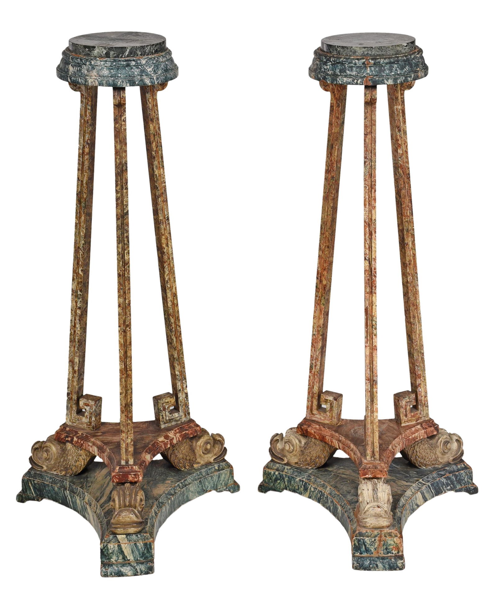 Fine Pair Regency Simulated Marble Torchieres