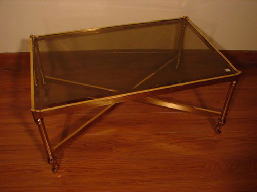 BRASS COFFEE TABLE ATTRIBUTED TO LABARGE HAVING A "CHIPPED" EDGE GLASS TOP.Kamelot Auctions4.4(345)$150372 Lots Away