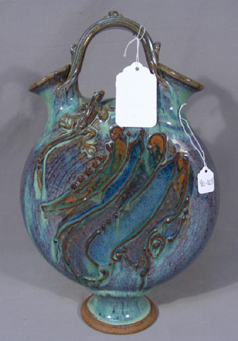 FINE QUALITY POTTERY VASE WITH APPLIED LIZARDS