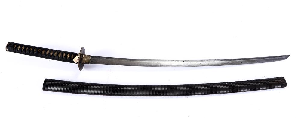 A JAPANESE SAMURAI SWORD. 104 cm long. WE ARE UNABLE TO OFFER IN HOUSE SHIPPING ON THIS LOTMar 19, 2026Rare Japanese Meiji era (1868-1912) "Sword Ban" Period Katana (APL)Signed Japanese Sword Sukesada Osafune BizenMar 18, 2026IMPERIAL GERMAN M1849 ARTILLERY SABER BY WKCMar 27, 2026Japanese Wakizashi Sword in Koshirae - Signed Tong7 days LeftJapanese Samurai Katana Sword with WWII (1941) Period Blade ~ Maker Marked Toshi Masa and Arsenal7 days LeftJAPANESE TYPE 19 ‘KYU GUNTO’ OFFICER’S SWORDMar 26, 2026WEHRMACHT OFFICER’S DRESS SWORD BY ALEXANDER COPPELMar 26, 2026Rare Japanese Late War Type 95 Shin Gunto NCO Sword Matching Number ScabbardApr 12, 2026WWI US Army Model 1902 Officer's SaberMar 14, 2026Extremely Rare US Civil War SAUERBIER STAFF & FIELD SWORD Custom Skull & CrossbonesMar 28, 2026Japanese WWII NCO Officer Gunto Sword Matching Serial NumbersApr 12, 2026Civil War 1864 Mansfield & Lamb American Civil War Cavalry Sword w/ ScabbardOriginal Japanese Short Sword - 17 In Blade W/ ScabbardPRUSSIAN RED CROSS PRESENTATION SWORD BY PACK, OHLIGER & CO.Mar 27, 2026Musashi Katana SwordApr 14, 2026
