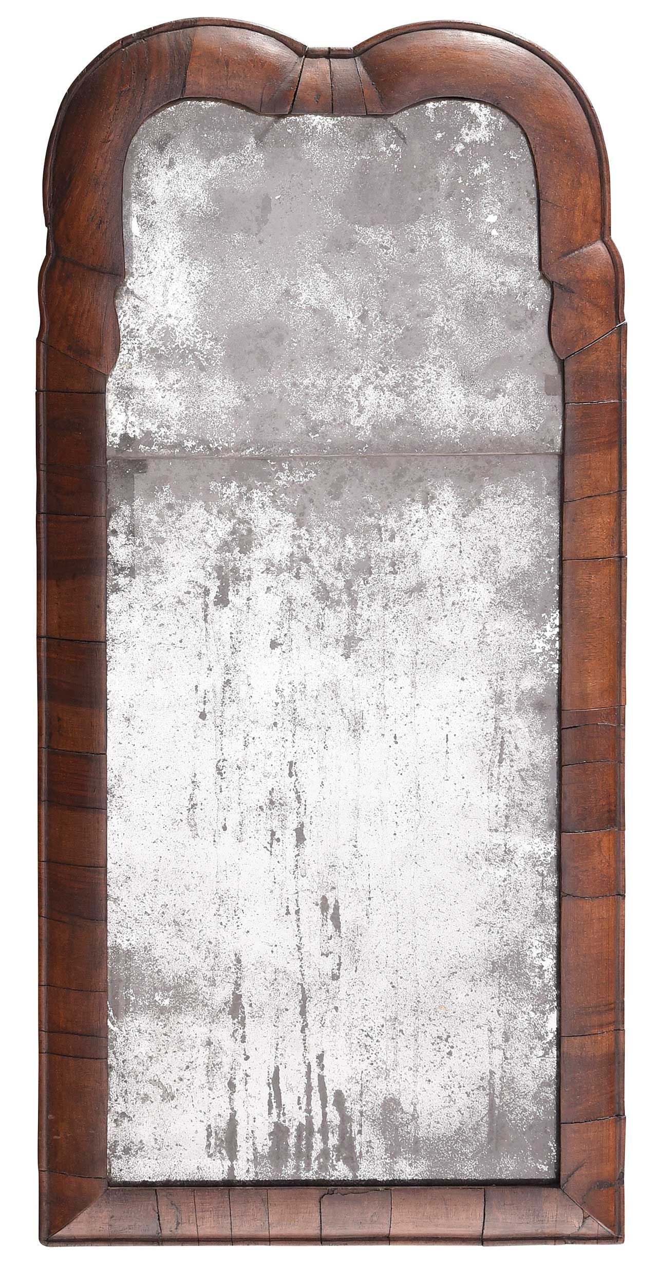 A QUEEN ANNE WALNUT CUSHION MIRROR, CIRCA 1710