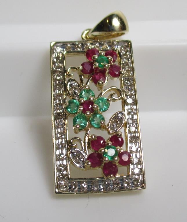 Fine Ruby & Emerald 10k YG Pendant
