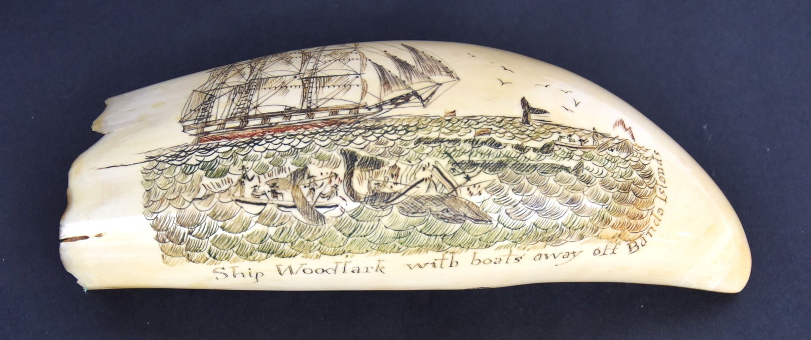 VIGNETTE ENGRAVER SCRIMSHAW WHALE'S TOOTH Mid-19th Century Length 6.75".Eldred's4.8(484)$15,0005 days Left