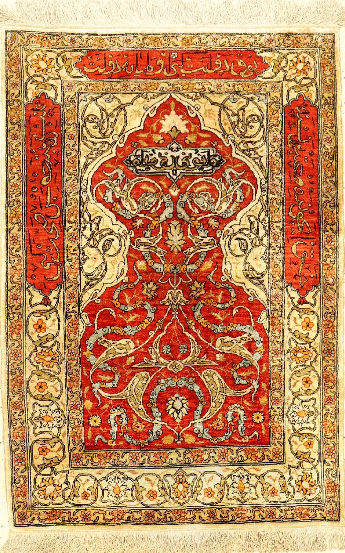Fine Silk & Metal-Thread Hereke Rug,