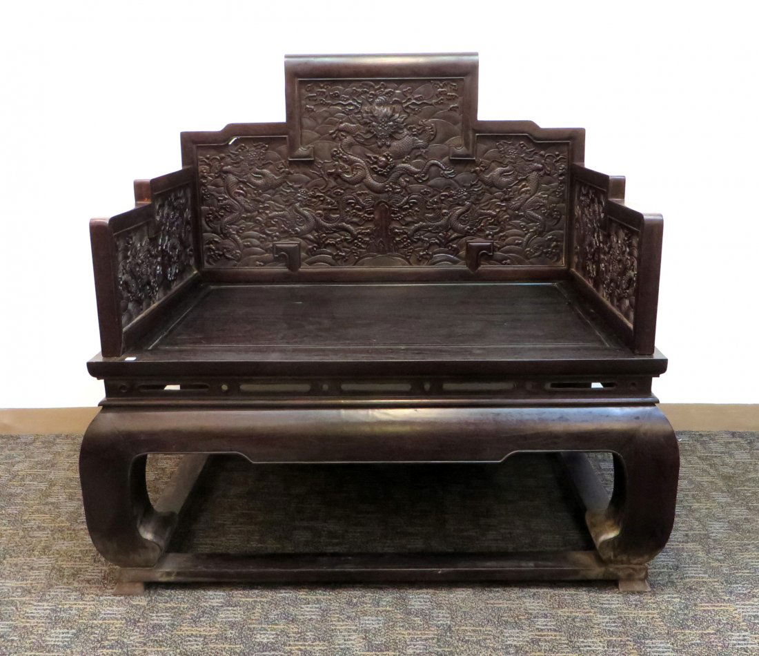 A Pair of Chinese Yoke Back Official's Hat Chairs4 days LeftVintage Chinese Carved Wood Horseshoe Back Chair (C)324 Lots AwayA Chinese Zitan Throne with Relief-carved Chilong Dragons and Shou CharactersMar 08, 2026A LACQUER AND POLYCHROME THRONE WITH DOUBLE DRAGONS PLAYING WITH A PEARL MOTIFMar 05, 2026Early 1900's Japanese Carved Dragon Chair, Japanese Meiji period, elaborate carved dragons arm rest,2 days LeftHuanghuali Wood Carved Dragon Pattern Chair4 days LeftAntique Chinese Deep Carved Rosewood Figural King Throne Chair with Dragons 1920Mar 07, 2026Antique Chinese Carved Wood Emperor Throne Chair6 days LeftAMERICAN LADDER-BACK RUSH-SEAT PAINTED WAGON SEATMar 06, 2026CHINESE CARVED WOOD CHAIR WITH MARBLE INLAY3 days LeftHuanghuali Wood Table Screen with Dragon Motif6 days LeftAntique Chinese Deeply Carved Rosewood Figural Queen Chair with Dragons C1920Mar 07, 2026A Set of Huge Zitanwood Auspicious Cloud and Dragon Pattern ThronesMar 05, 2026Chinese Stained Wood Bench4 days LeftA Set of Huge Zitanwood Inlaid White Jade Auspicious Cloud and Dragon Pattern ThronesMar 14, 2026A Chinese Zitan Luohan Bed with Relief-carved Guai Zi Dragon PatternsMar 08, 2026