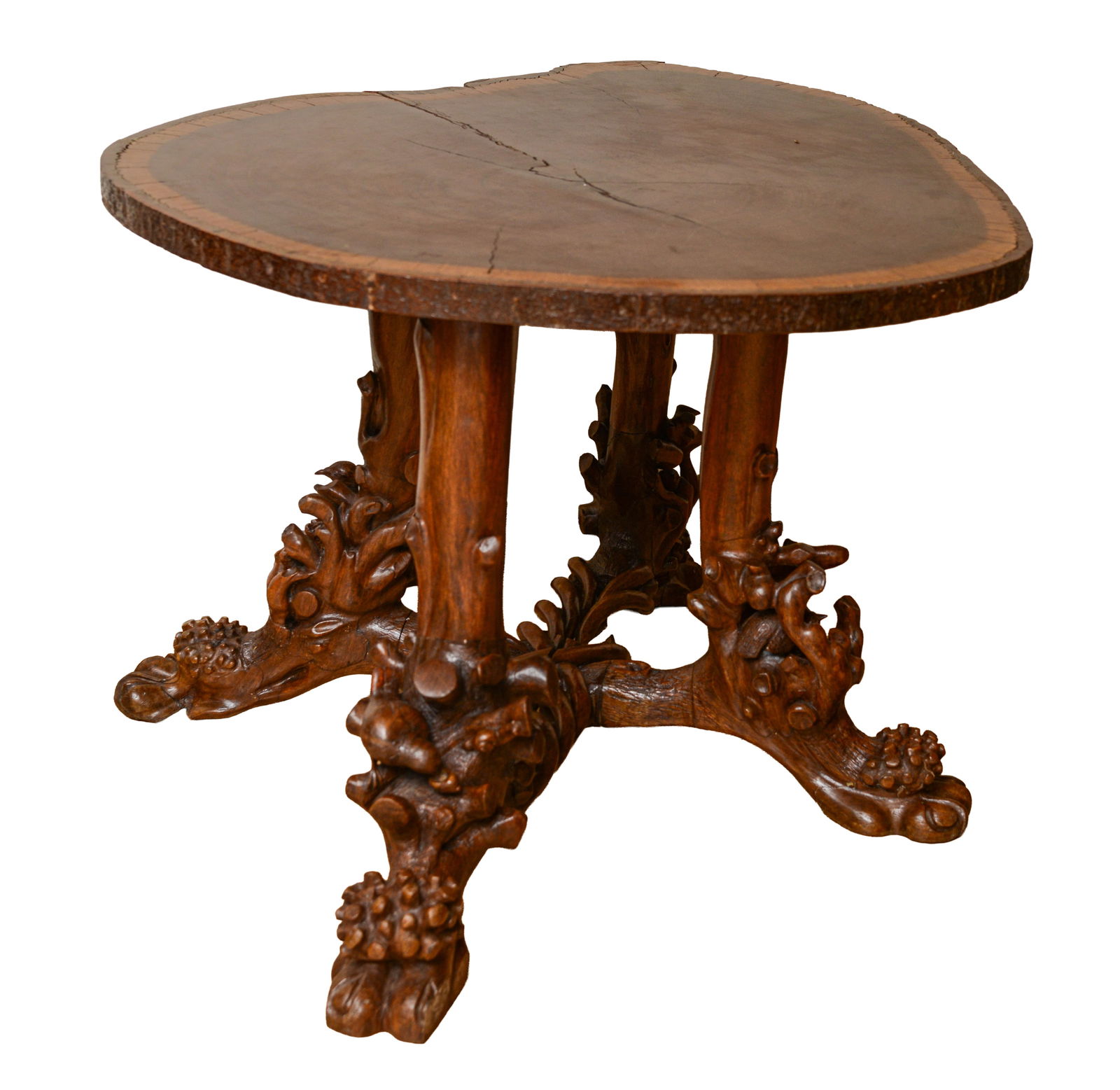 FINELY CARVED WALNUT TABLE WITH BIRDS.
