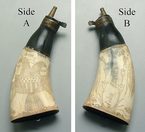 Finely engraved powder horn