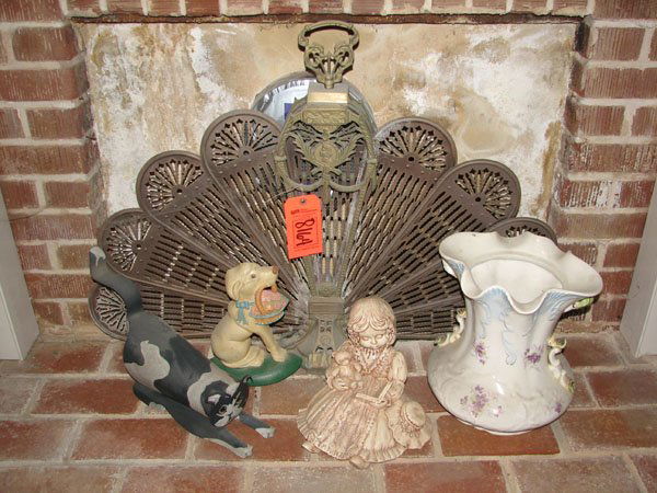 FIREPLACE SCREEN WITH PORCELAIN BASE, TIN CAT, CA