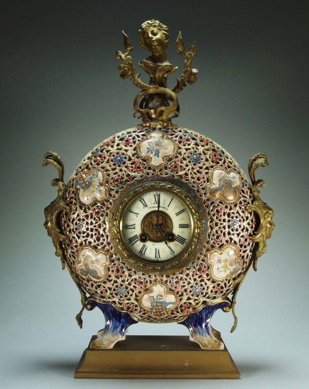 Fischer Budapest Bronze Porcelain Moonflask Clock