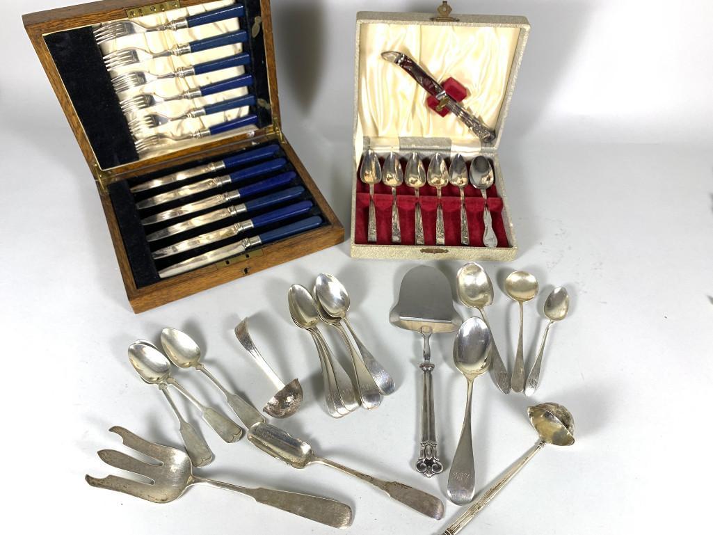 Lot of silver cutlery113 Lots AwayEstate lot STERLING SILVER including large fish knife, other serving utensils, souvenir spoons,3 days LeftCOLLECTION OF VINTAGE CARPENTRY HAND TOOLSFeb 15, 2026Antique Flatware & Kitchen Utensils (Some Silver)Feb 12, 2026Three boxed canteens of cutlery S. Tyzack & Sons , Ringfield etc 8 x 38 x 26cm (3)Feb 12, 2026A silver napkin together with silver plated items, weight of silver napkin 14.6g(15)Feb 12, 2026Mother of Pearl Accessories5 days LeftWolfers Frères, A 98-piece Solid Silver Cutlery Set. Silver, 4,029kg.2 days LeftCollection of Sterling and Coin Silver FlatwareFeb 12, 2026Six Piece Silverplated Bakelite Handle Fish Set in CaseFeb 16, 2026ANTIQUE RUSSIAN SILVER FISH SET, GRACHEV, 18964 days LeftStieff Puritan Sterling Silver Flatware Set for 8 - 63 Pieces5 days Left9 fancy pieces of sterling silver 8.46 ozt including 2 S. Kirk berry spoons, fish server, etc.Feb 01, 2026Group of American Silver FlatwareFeb 12, 2026Christofle, Perles, A 130-piece Silver-Plated Cutlery Set.2 days LeftLARGE GROUP SILVER HOLLOWARE & SERVING ITEMSFeb 22, 2026