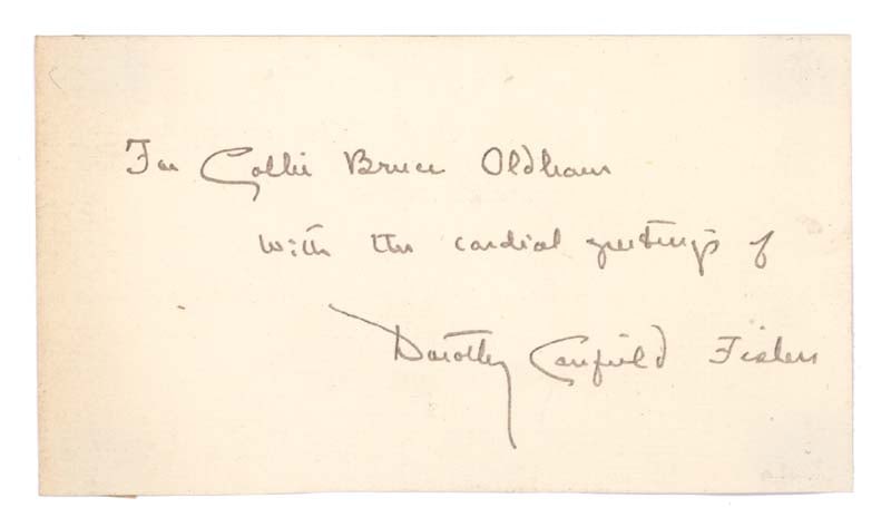 Fisher,Dorothy Canfield Signed Card