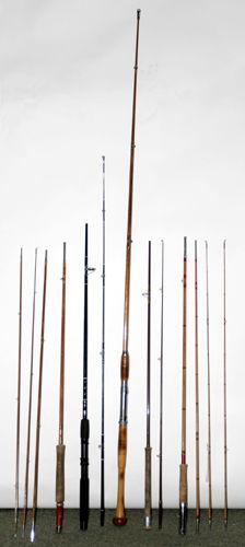 SoldVintage Bamboo Fishing RodsGrouping includes five deep sea bamboo fishing rods, one is marked "Kingfisher" and a bamboo bait casting rod.See Sold Price