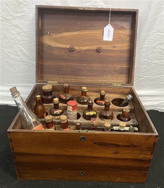 COUNTRY LOT KNIFE BOXES , KNIVES , JUGS , TINS7 days LeftCOUNTRY WOODEN STORAGE BOXES, LOT OF THREEMar 06, 2026AMERICAN COUNTRY WOODEN STORAGE BOXES, LOT OF FOURMar 06, 2026English Wooden Boxes4 days LeftAntique Hinged Dovetail Wooden ChestMar 17, 2026Antique Specimen Collection in Compartments with Vials Watchmaker Watchmaking Tools4 hrs LeftVintage Wooden Box With Glass Vials, Swiss-Labeled WATCHMAKER WATCHMAKING TOOLS4 hrs LeftVintage Wooden Box With Small Vials and Metal Contents Watchmaker Watchmaking Tools4 hrs LeftAntique Civil War Homeopathic Pharmaceutical CaseMar 03, 2026English Wooden Vanity Box4 days LeftMahogany Apothecary Box w Labeled Bottles, c. 1860s4 days LeftDovetail Hinged Lid Wood Chest w/ Compated Trays to the Inside w/ Iron Handles on CastersMar 16, 2026English Brass Bound Mahogany Campaign Apothecary BoxMar 16, 2026Antique Cylinder Musical Box with Inlaid Wooden Case1 day LeftTwo Wood Storage BoxesStandard Oil of Indiana Salesman Oil Bottle Sample Display CabinetMar 21, 2026