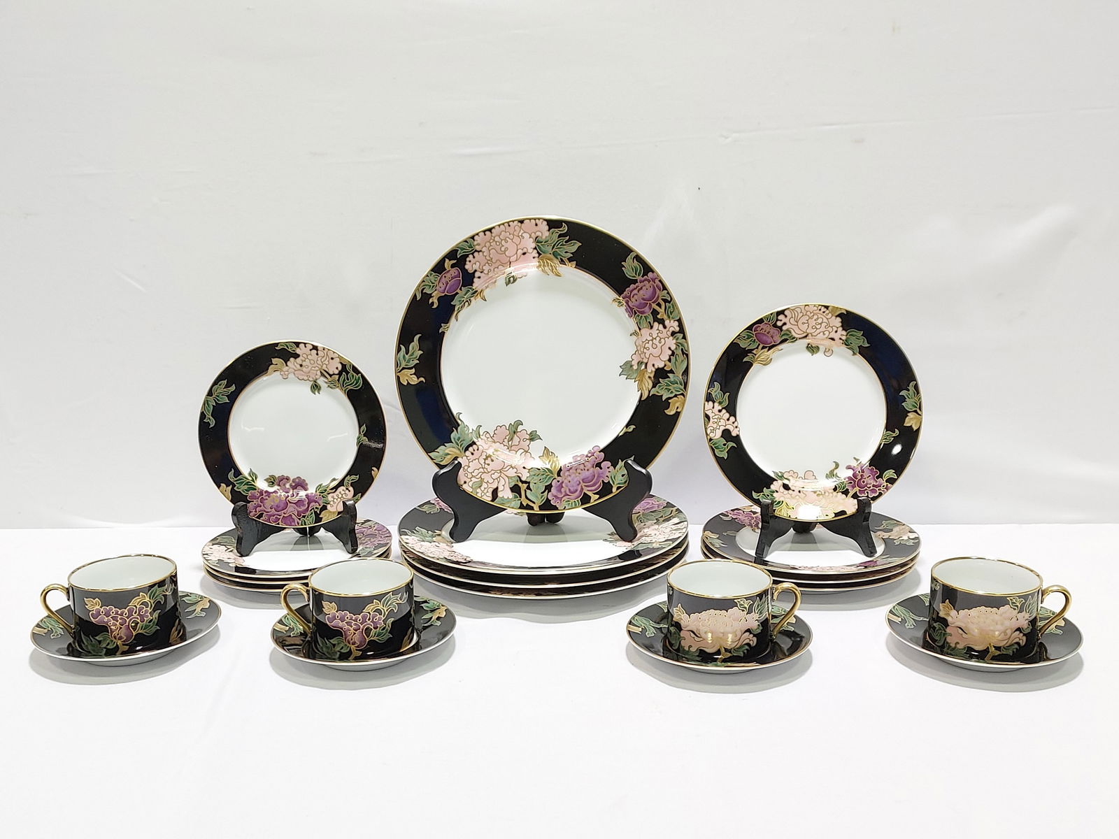 FITZ & FLOYD "CLOISONNE PEONY" DINNERWARE FOR 4